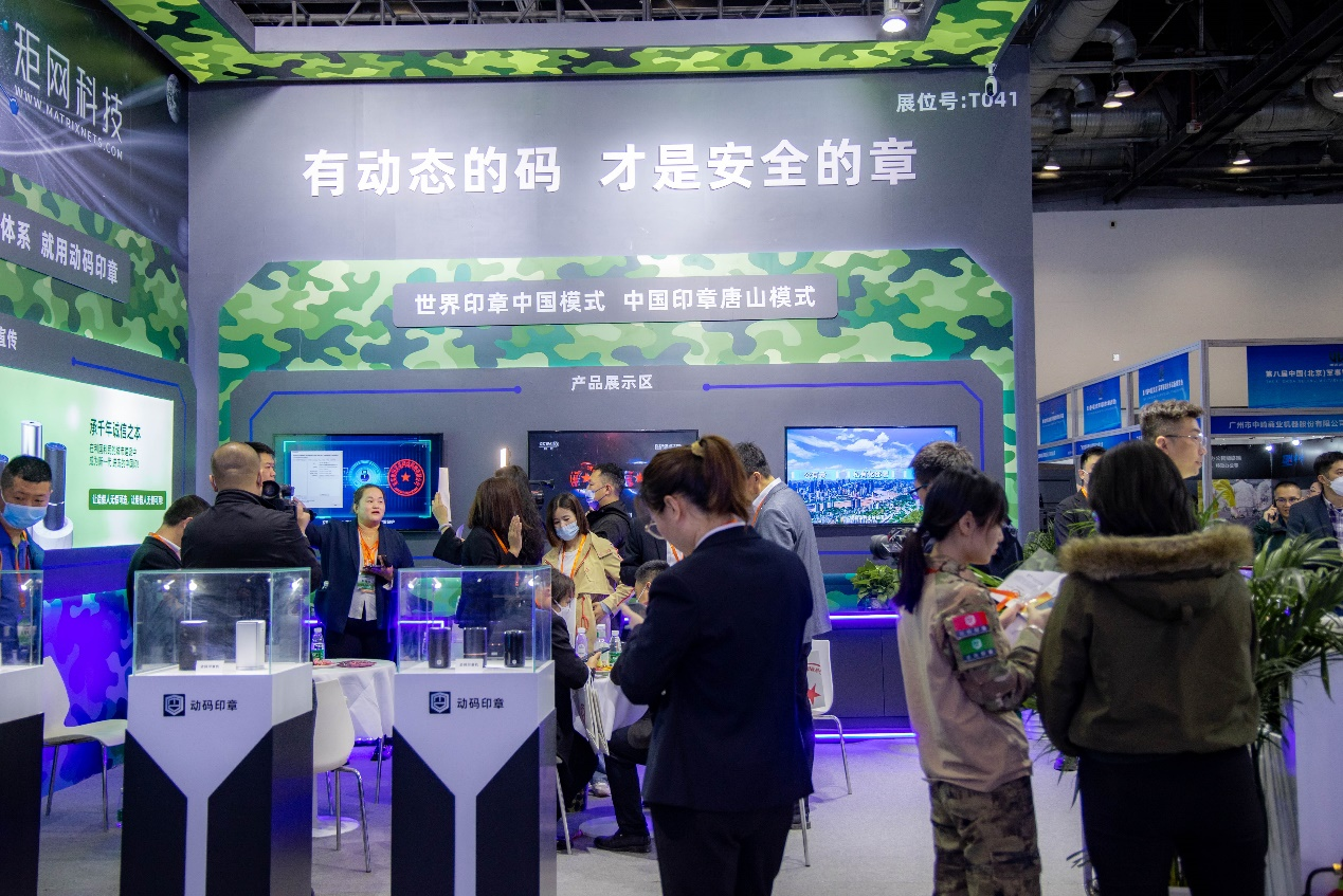 4月21-23日,矩网科技亮相第八届中国(北京)军事智能技术装备博览会,该会议由中国科学技术协会指导、中国指挥与控制学会主办,是一次集军民前沿技术领域集学术研讨、产品展示、专题研讨于一体的全国性、综合性的学术品牌活动。矩网科技推出的自主创新产品动码印章为本次军博会独家给予了证件印章防伪技术支持。